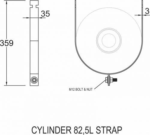 Kẹp xi lanh đi kèm với thanh thép chữ C có thể bắt vít vào tường cứng hoặc hàn vào khung giàn bình chứa. Để lắp nhanh, trượt các dây đai qua các rãnh xoay đối diện nhau sao cho các lỗ bu lông được căn chỉnh phù hợp, lắp bu lông qua các lỗ dây đeo và siết đúng cách với đai ốc và bu lông M12