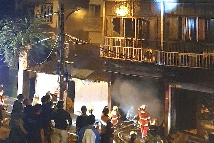 Khoảng 23h00 ngày 12/10 nhận được tin báo cháy tại nhà số 652 Nguyễn Khoái, phường Vĩnh Hưng, quận Hoàng Mai, Hà Nội, lực lượng cảnh sát PCCC &CNCH đã có mặt gồm 4 xe chuyên dụng và hàng loạt bình chữa cháy cá nhân khẩn trương triển khai dập đám cháy.