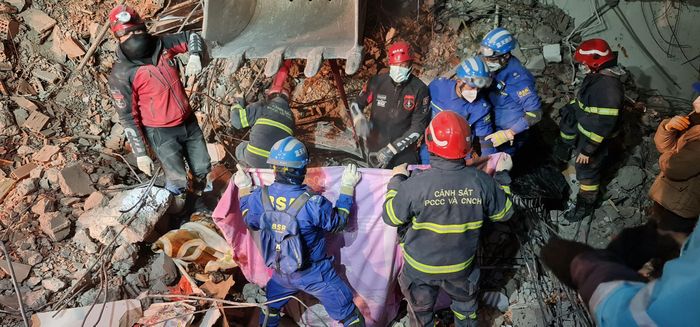 Đoàn đã phối hợp chặt chẽ với các lực lượng cứu hộ tìm kiếm và đưa ra ngoài một thiếu niên sống sót bị vùi lấp trong đống đổ nát và 14 thi thể nạn nhân bàn giao cho cơ quan y tế.