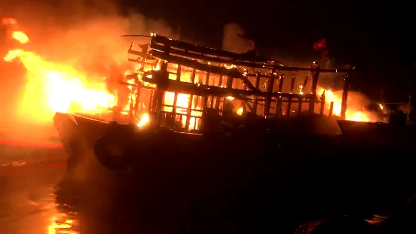 Theo ghi nhận, vào 3h15 ngày 14/10, hai tàu cá đang neo đậu thuộc địa phận Tân Hy 1, xã Bình Đông, huyện Bình Sơn, Quảng Ngãi bất ngờ bốc cháy. Tàu có số hiệu QNg 97206 TS cháy lan sang tàu QNg 90997 TS, cả hai tàu do ông Huỳnh Phi Hổ ( 41 tuổi) thường trú tại Bình Đông – Bình Sơn – Quảng Ngãi làm chủ.