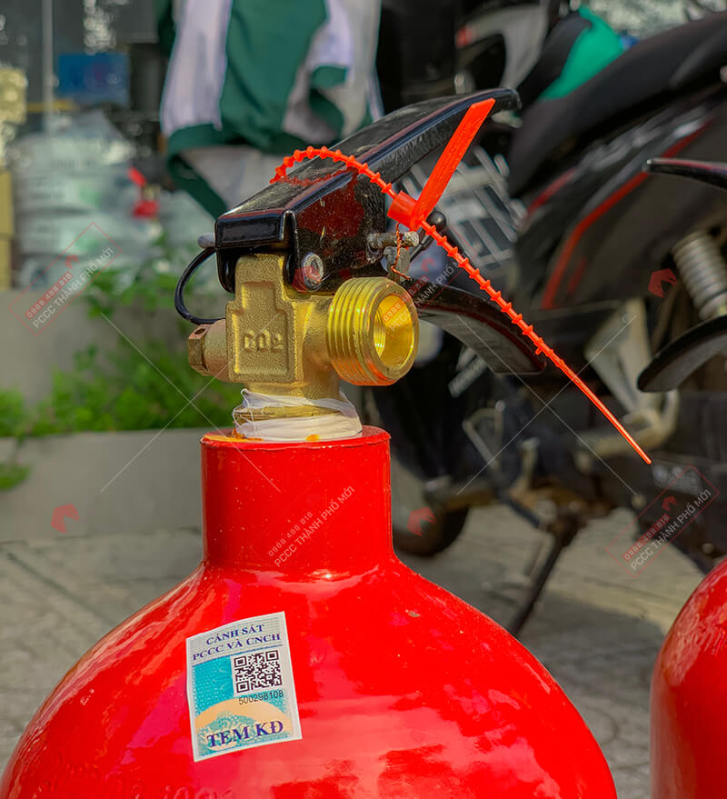 Bình chữa cháy đã kiểm định được gắn tem kiểm định PCCC