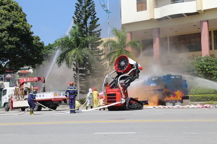 ROBOT tự hành TAF35 chữa cháy lần đầu tiên xuất hiện trong buổi diễn tập PCCC&CHCN
